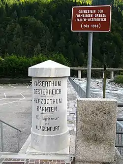 Byen består egentlig af to dele. Det italienske Pontebba og det østrigske Pontafel. Byen dannede grænsen mellem de to lande indtil 1918, hvorefter grænsen flyttedes længere østpå ved Tarvisio.