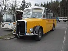 Ældre schweizisk Saurer postbus, indregistreret til turiskørsel i Tyskland.