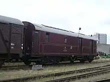 Dansk postvogn fra 1936 på Danmarks Jernbanemuseum.