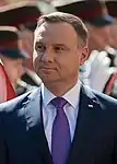 - Da Duda i 2015 blev valgt meldte han sig ud af sit daværende parti Lov og Retfærdighed for at regere som værende officelt partiuafhængig. Selvom Duda officielt er partiuafhængig er hans kampagne støttet og sponsoreret af partiet Lov og Retfærdighed (PiS) - hans parti før han blev præsident.[1][2]
