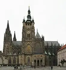 Centralt i tredje borggård finder man Prags domkirke, hvis første dele stammer fra Karl 4.'s tid. Der blev bygget på kirken i flere omgange i de følgende årtusinder, og først i 1929 var kirken klar til indvielse. I kirkens Václav-kapel, der var et af de første afsnit, der stod færdigt i 1364, findes et skatkammer med de tjekkiske kronjuveler, der kun vises frem ved meget specielle anledninger. I kirkens krypt ligger flere kejsere begravet, blandt andet Karl 4. og Rudolf 2. Kirkens tårn har en udsigtsplatform i 80 m højde med fin udsigt over Prag.