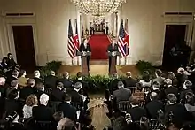 Under coronakrisen i 2020 holdt statsminister Mette Frederiksen pressemøde 11. marts 2020 da hun lukkede Danmark pga. COVID-19.[1]