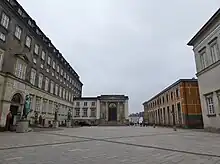 Højesteret har sin hovedindgang i Prins Jørgens Gård, og her har man genbrugt indgangspartiet fra Kongeporten på det andet Christiansborg slot, som dog nu er blevet løftet op til en placering for enden af indgangstrappen.