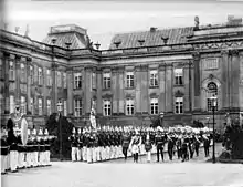 Den 10-årige Prins Oskars udnævnelse til løjtnant i det 1. Garderegiment til fods i Potsdamer Stadtschloss i 1898.