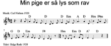 Melodien begynder med et faldende motiv. Nielsens otte første toner i sangen følger otte toner i melodien til "He shall feed His flock like a shepherd" fra Händels Messias.[6]