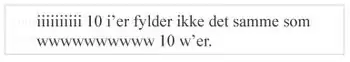 Her et eksempel på en proportionalskrift. Læg mærke til at de 10 w’er fylder mere end det dobbelte af de 10 i’er. Sammenlign eventuelt med en monospatieret skrift.
