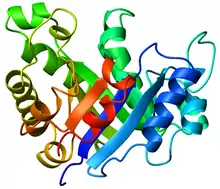 Tryptophanhydroxylase er et enzym, der ligesom andre hydroxylaser består af tre domæner, hvoraf det ene er det katalytiske domæne[2]. De to andre domæner er et N-terminalt regulatorisk domæne og et mindre C-terminalt tetrameriseringsdomæne.[3]