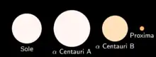 - Kervella, P.; Thévenin, F.; Lovis, C. (2017). "Proxima's orbit around α Centauri". Astronomy & Astrophysics. 598: L7. arXiv:1611.03495. Bibcode:2017A&A...598L...7K. doi:10.1051/0004-6361/201629930. ISSN 0004-6361. S2CID 50867264. Separation: 3.1, left column of page 3; Orbital period and epoch of periastron: Table 3, right column of page 3.