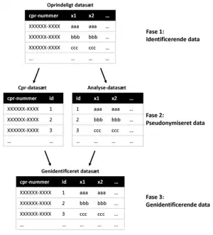 Et eksempel på tilfælde, hvor pseudonymisering er gavnligt, er i samfundsvidenskabelige undersøgelser, hvor personer indgår med CPR-numre. I datasættet bestående af individer kan der i en oprindelig ikke-pseudonymiseret udgave være en kolonne med CPR-nummer. For at pseudonymisere kan denne CPR-kolonne adskilles resten, men gemmes i et nyt datasæt. For at kunne knytte CPR med datasættet igen gives hvert CPR et unikt identifikationsnummer, som er ens i både CPR-datasættet og analyse-datasættet. På den måde kan individerne ikke spores, hvis man blot er i besiddelse af analyse-datasættet, men med adgang til begge datasæt kan man genidentificere individerne.
