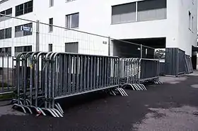 Publikumshegn er ofte lavet af galvaniseret stål, men findes også i mere synlige, farvede udgaver.