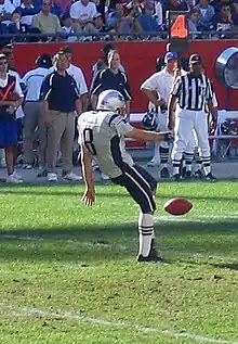 New England Patriots punter Josh Miller i gang med at punte bolden.