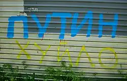 | | Sammenskrivningsforslag Artiklerne [[Den russisk-ukrainske krig]], Putin huylo! er foreslået sammenskrevet. (Siden december 2023) Diskutér forslaget |
