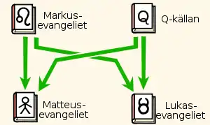 Tokildehypotesen, som er den mest udbredte teori (blandt bibelkritikere) til forklaring af det synoptiske problem, siger at Markusevangeliet blev skrevet først. Lukas og Mattæus har så kendt til Markusevangeliet, og brugt det som kilde da de skrev deres evangelier. Dertil har de to evangelier en del fælles stof. Dette stof antages at stamme fra en fælles kilde, som ofte kaldes Q.