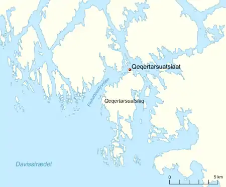 Fiskenæsfjordens beliggenhed i forhold til Qeqertarsuatsiaat.