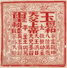 Myndighederne begyndte at forfølge Hongs tilhængere. Det var gnisten, som udløste oprøret. Først begyndte tilhængerne med guerillakrigsføring, efterhånden udviklede det sig til regulær krig. Oprøret tog til i provinsen Guangxi. I august 1851 proklamerede Hong oprettelsen af Den fuldkomne freds himmelske kongerige og sig selv som dets himmelske konge. Oprøret bredte sig nordover med stor hastighed. På vejen voksede hæren til 200.000 mand, og i 1852 erobrede den Wuchang.