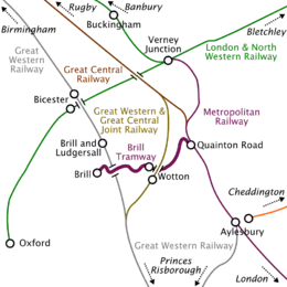 Aylesbury and Buckingham Railway (1868–1891) Metropolitan Railway og Great Central Railway (1891–1923) Metropolitan Railway og London and North Eastern Railway (1923–1948) British Railways (1948–1966) | ||