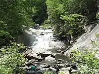 Vandfaldet er bedst kendt for det dybe bassin, der findes ved bunden af faldet. Dette bassin anvendes ofte til badning, og den nederste del af faldet som vandrutsjebane, hvilket i folkemunde har givet faldet navnet "Bust-Your-Butt-Falls" (nærmest "Bums-din-numse") eller Sliding Rock Falls.