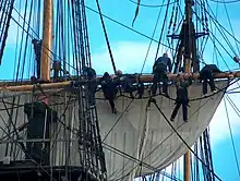 De forskellige ræer har mange navne, alt efter hvilken type rig de sidder på (fuldrigger-Barkentine-topsejlskonnert-bark m.m.)