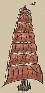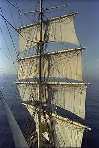 Det underste sejl navngives efter masten. På fokkemasten (forreste mast) er det som her, en fok. På stormasten benævnes det storsejl.
