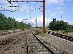 ![]() Stationsterrænet, set fra den nedlagte Aabenraabane | |||