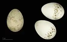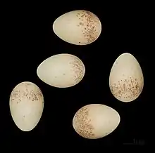 Ungfuglene ligner hunnen, men har en mørk stribe på oversiden. Æggene er ret forskellige med en række små grå og brune pletter.