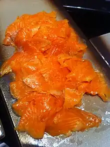 Røget laks er en specialitet i østersøområdet[kilde mangler], hvor rå laksefisk er blevet røget som med alle andre røgvarer for at øge holdbarheden, men siden er røgen blevet en tilvvalgt smagsvariant.