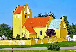 Kirken ligger i dag midt i et udbygget sommerhusområde, men da den blev opført var den i centrum af en by. Byen blev dog flyttet pga. sandflugt. Kirken er karakteristisk med sin gule farve.