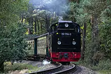 - Rügensche Kleinbahn, der også kaldes for Rasender Roland, er en smalsporsbane, der stadig drives med historiske damplokomotiver. Banen forbinder byerne Putbus med Binz, Sellin, Baabe og Göhren. Der opretholdes regelmæssig drift på den 24,1 kilometer lange strækning med originale damplokomotiver og togvogne.