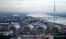 Luftfoto af pavillonerne i Rīgas Centrāltirgus