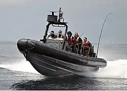 En moderne 20-fods gummibåd med en 100 hk påhængsmotor kan sejle op til 40 knob (ca. 75 km/t) gennem vandet.