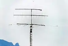 Tre Yagi-antenner (lineær polariserede). Formodentlig radioamatørantenner.