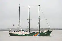 Det andet Rainbow Warrior er bygget i 1957 og købt af Greenpeace 1987. Det er en skonnert med 28 køjer.[1]