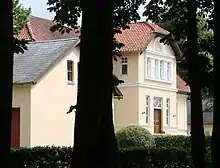 Hovedbygningen fra 1873 fremstår som et enetages gulpudset stuehus. Oprindeligt var bygningen forsynet med kamtakker og taget var udført som helvalm og tækket med skifer, men efter branden blev den genopført som halvvalm, taget dækket med tegl og bygningen reduceret med et fag i hver ende.
