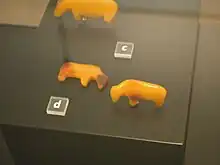 De otte udskårne dyrefigurer af rav er fundet henholdsvis ved Resen nord for Skive[2][3][4], Tangkrogen i Aarhus, Fanø Vesterstrand[5][6], Bølling Sø[7][8] og Engesvang Mose vest for Silkeborg[9][10], Egemarke på Nordvestsjælland [11][12] og Næsby Strand på Vestsjælland[13][14], mens den ottende er uden oplysninger om findestedet[15][16].