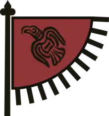 Flaget var rødt eller rødgult med et anker langs overkanten. I flaget var der en sort eller mørkeblå ravn, og langs kanterne var der en bort. Ravnen kan være et symbol på Odin, der ofte blev afbildet med sine to ravne Hugin og Munin. Dette skulle skabe frygt blandt fjenden, da man påberåbte sig Odins magt.