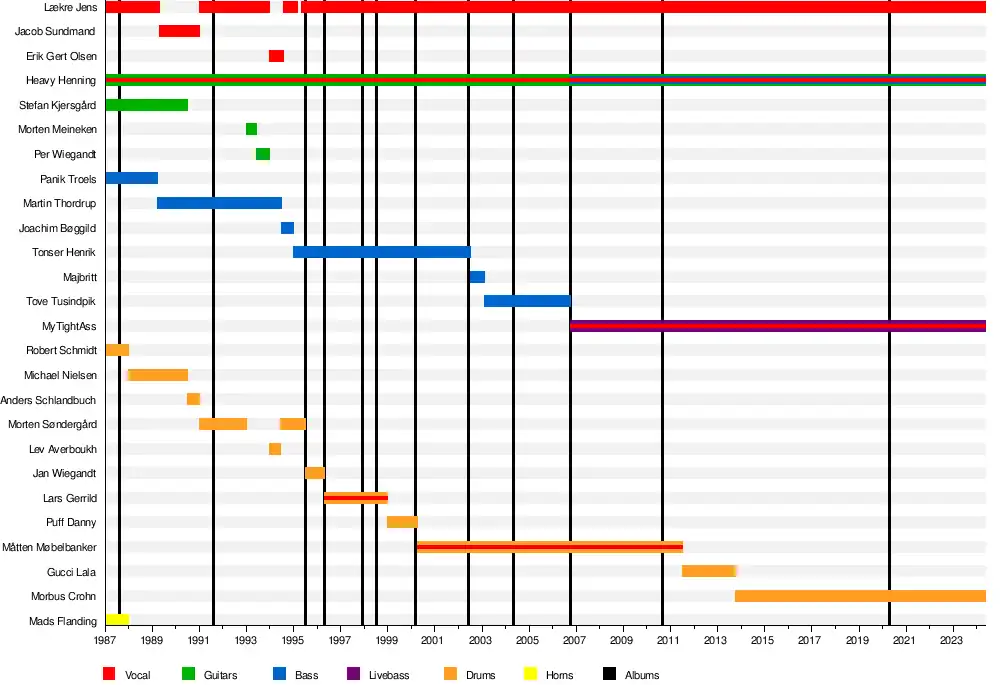 Bandet har ikke været opløst siden 1994, men har dog haft en løbende udskiftning i besætningen igennem årene:
