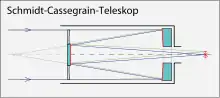 Blandt de forskellige typer af spejlteleskoper, der anvendes til store teleskoper er bl.a. Ritchey-Chrétien-teleskop og Schmidt-teleskop.