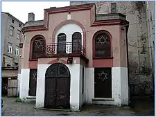 Reicher-synagogen blev rejst i årene 1895-1902 af familien Reicher efter tegninger af Gustaw Landau-Gutenteger. Synagogen kunne rumme 42 personer. Den overlevede kun 2. verdenskrig fordi ejeren, Wolf Reicher, solgte den fiktivt til sin tyske handelspartner, som ikke lod tyskerne rive den ned (synagogen blev lavet om til et saltmagasin).