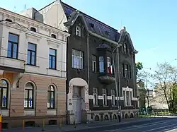 Villaen blev bygget i 1904 efter tegninger af Dawid Lande, som brugte en række elementer karakteristisk for art nouveaustilen i elevationen, som for eksempel slyngende rødder, blade, kastanjeblomster samt en ugle med udspredte vinger. Asymmetrien genspejles i størrelsen og formen af vinduerne. Over karnappet i første etage står byggningsåret "1904" indskrevet og på toppen en stor flagermus, som sammen med den meget mørke facade giver villaen en noget spøgelsesagtig karakter. 51°45′57″N 19°26′59″Ø