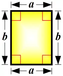 Et rektangel er en plan firkant, hvori modstående sider er lige lange, og alle fire vinkler er rette (90°). Firkanten på illustrationen til højre er et rektangel; bemærk at de røde hjørner der er indtegnet, blot symboliserer at hjørnerne danner rette vinkler; de er ikke en del af selve rektanglet.