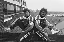 ![]() René Eijkelkamp (th.) sammen med Marco van Basten | |||