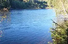 Området langs elven er stort set dækket af nåleskov.