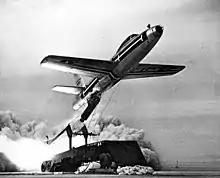 - I 1955 blev en udrangeret F-84G det første fly til at starte fra en trailer.[12] Se: "Zero-length launch".