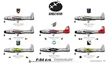 - F-84 var det første fly, som blev benyttet af U.S. Air Force Thunderbirds. De benyttede F-84G Thunderjet fra 1953 til 1955 og F-84F Thunderstreak fra 1955 til 1956. F-84E blev også fløjet af opvisningsholdet Skyblazers fra United States Air Forces Europe (USAFE) fra 1950 til 1955.[1]