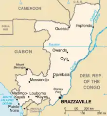 Landets hovedstad, Brazzaville, ligger i den sydlige del af landet ved Congofloden, lige over for Kinshasa, hovedstaden i DR Congo.