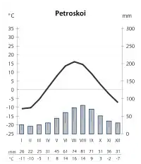 | Petrozavodsk (i syd) | Kem (ved Hvidehavet) |