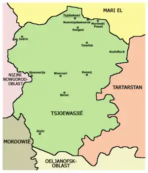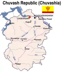 ![]() Republikken Tjuvasjien beliggenhed i Rusland Republikken Tjuvasjien beliggenhed i Rusland