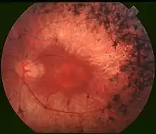 Retinitis pigmentosa er fællesbetegnelsen for en række arvelige sygdomme i øjets nethinde, som har det til fælles, at nethindens fotoreceptorer langsomt går til grunde på grund af en eller flere genetiske defekter i cellernes stofskifte. De første symptomer er natteblindhed. Derefter følger synsfeltindskrænkning, som gradvist flytter fra synsfeltets yderområder ind mod centrum af synsfeltet. Sygdommen giver i de værste tilfælde anledning til kikkertsynsfelt og blindhed. Mange tilfælde er lettere og debuterer først i voksenalderen.