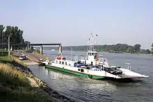 Udover broerne spillede færger af forskellige størrelser en vigtig rolle. I det 19. århundrede var de fleste færger af typen kabelfærge, som anvendte vandstrømmen i Rhinen som drivkraft. Færgerne var fastgjort med et kabel til et andet kabel, der var spændt ud over Rhinen i stor højde. Ved at dreje båden op mod strømmen blev den skubbet over til den anden side. I dag er der kun to sådanne færger tilbage ved Basel og ved Plittersdorf nær Rastatt, som mest har turistmæssig betydning. Først i det 19. århundrede blev de fleste færger erstattet af først dampfærger og senere af motorfærger.