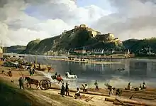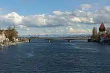 I midten af det 19. århundrede var der nedenfor Basel udelukkende pontonbroer over Rhinen.[46] Broerne kunne åbnes, således at skibe og de store tømmerflådninger kunne passere.